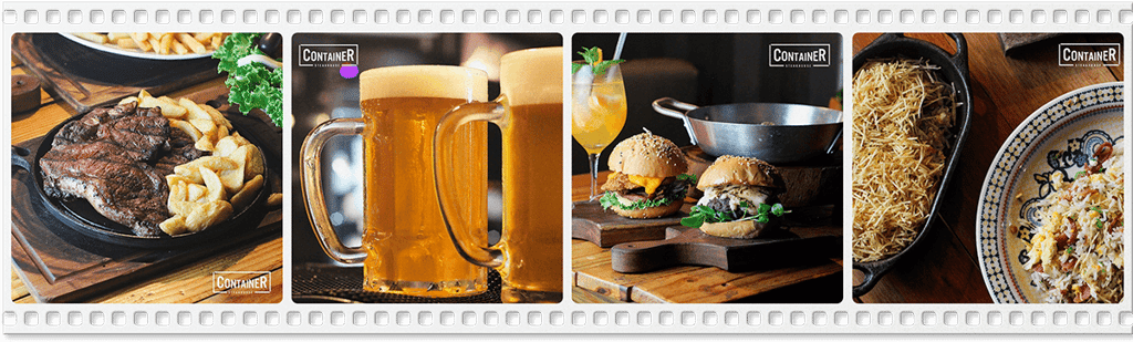 Nas lojas CONTAINER STEAKHOUSE, o cliente pode consumir steake’s, chopp, refrigerante, sucos, hambúrguer, massa e sobremesas.